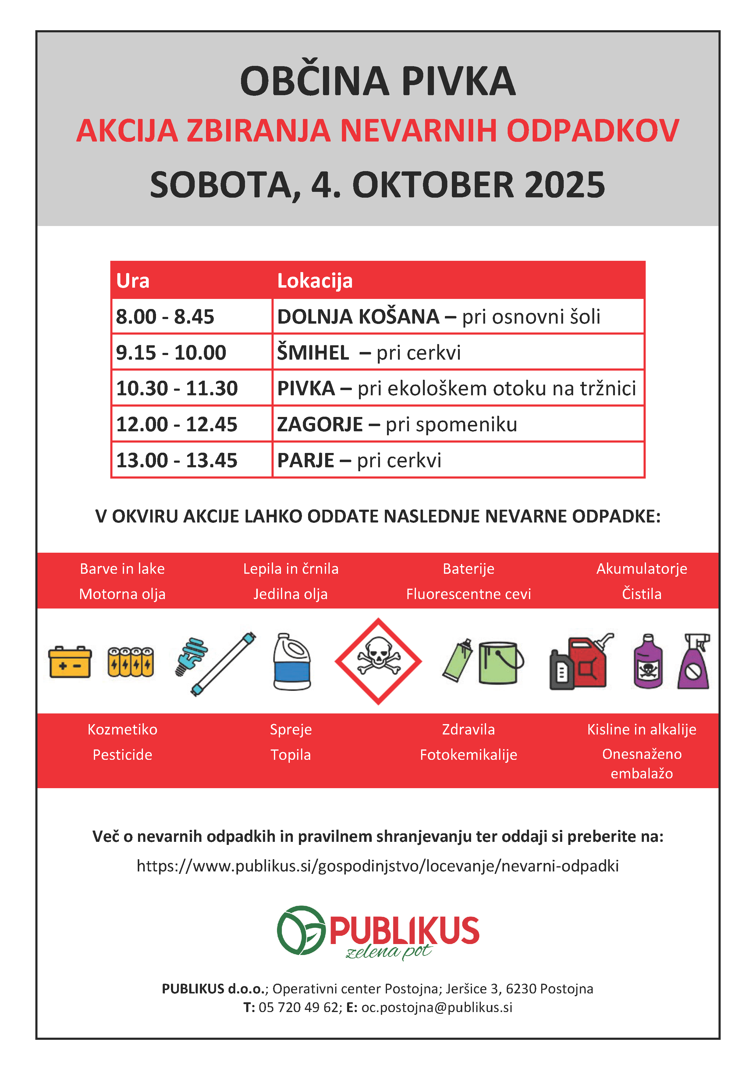 Jesenska akcija zbiranja nevarnih odpadkov - Občina Pivka25Sep